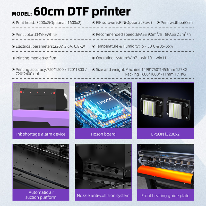 प्रिंट हेड: i3200x2 / i1600x2 मुद्रण चौड़ाई: ≤60सेमी